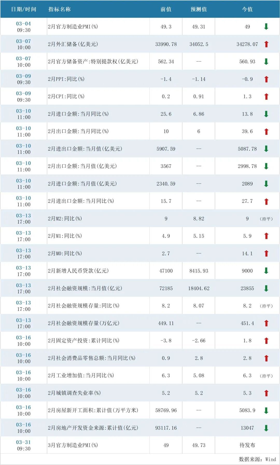 🗓️ 3月份中国重点经济指标发布日历